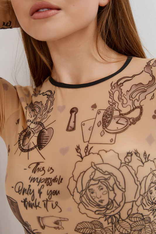 Боди "Brikoly Alisa" микросетка с эффектом тату, S