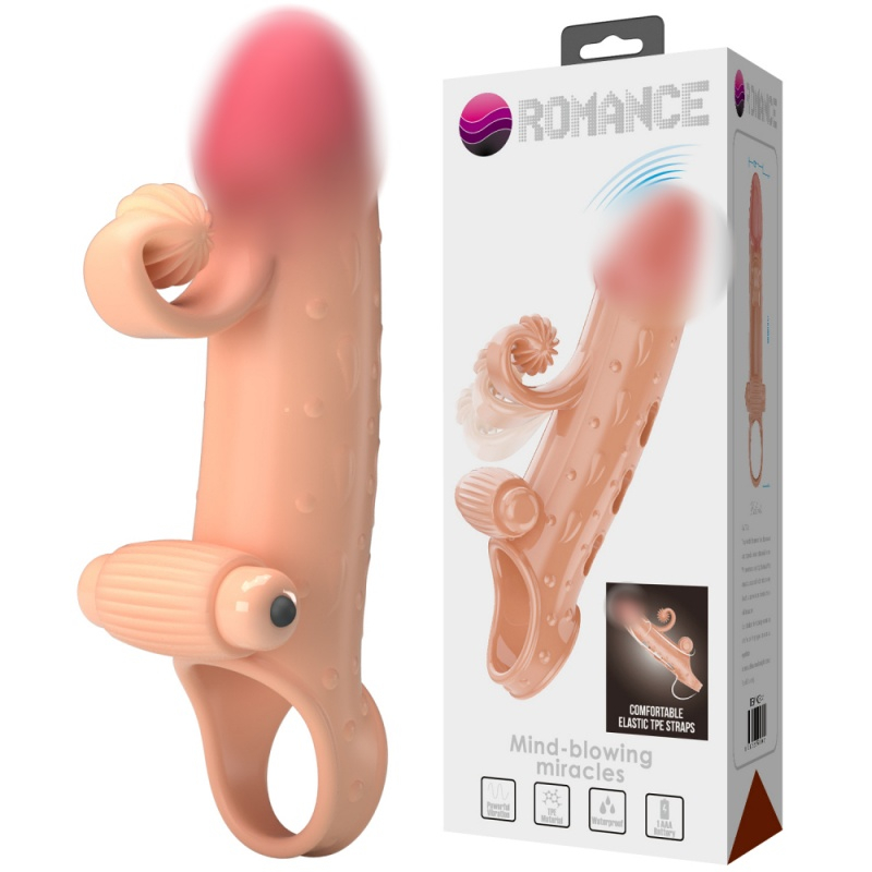 Насадка-удлинитель с вибрацией и клиторальным стимулятором "Romance" реалистичная